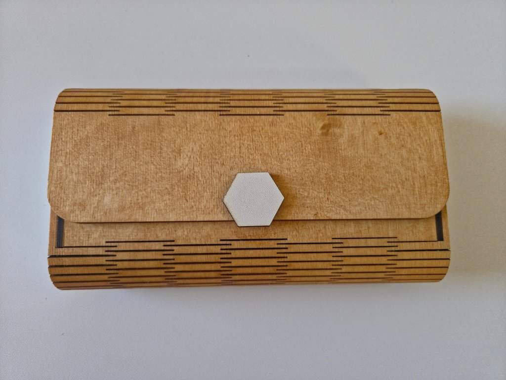 Vyrobené z březové překližky ošetřené včelím voskem, rozměry 18 x 10 x 4 cm.