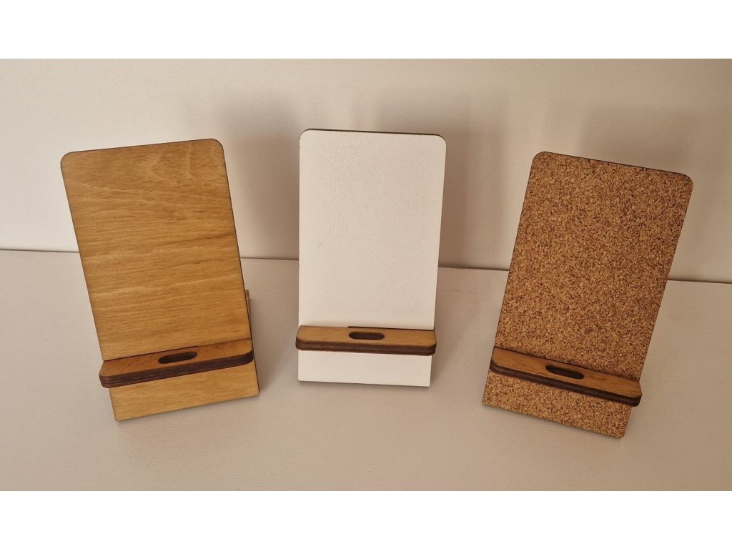 Decentní stojánek z přírodních materiálů se hodí na každý pracovní stůl. Skládá se ze dvou částí, jeho rozložením a opačným zasunutím jednoduše změníte vzhled. Opěrka může být ve variantě dřevo s korkem nebo čistě bílá. Dřevěný podstavec je vhodný pro vygravírování vašeho jména nebo loga.
